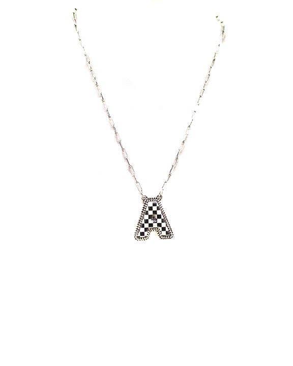 Checkered Bubble Initial Necklace